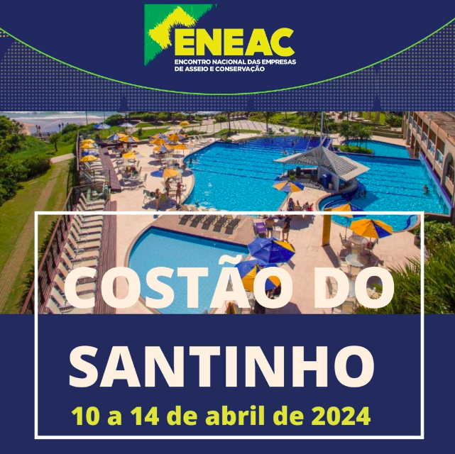 Está se aproximando o “Encontro Nacional das Empresas de Asseio e Conservação” (ENEAC 2024), que acontecerá entre os dias 10 e 14 de abril. Realizado pela Federação Nacional das Empresas Prestadoras de Serviços de Limpeza e Conservação (Febrac), o evento será no Costão do Santinho, em Santa Catarina. O objetivo do evento é integrar e reconhecer as empresas do setor de serviços terceirizáveis.