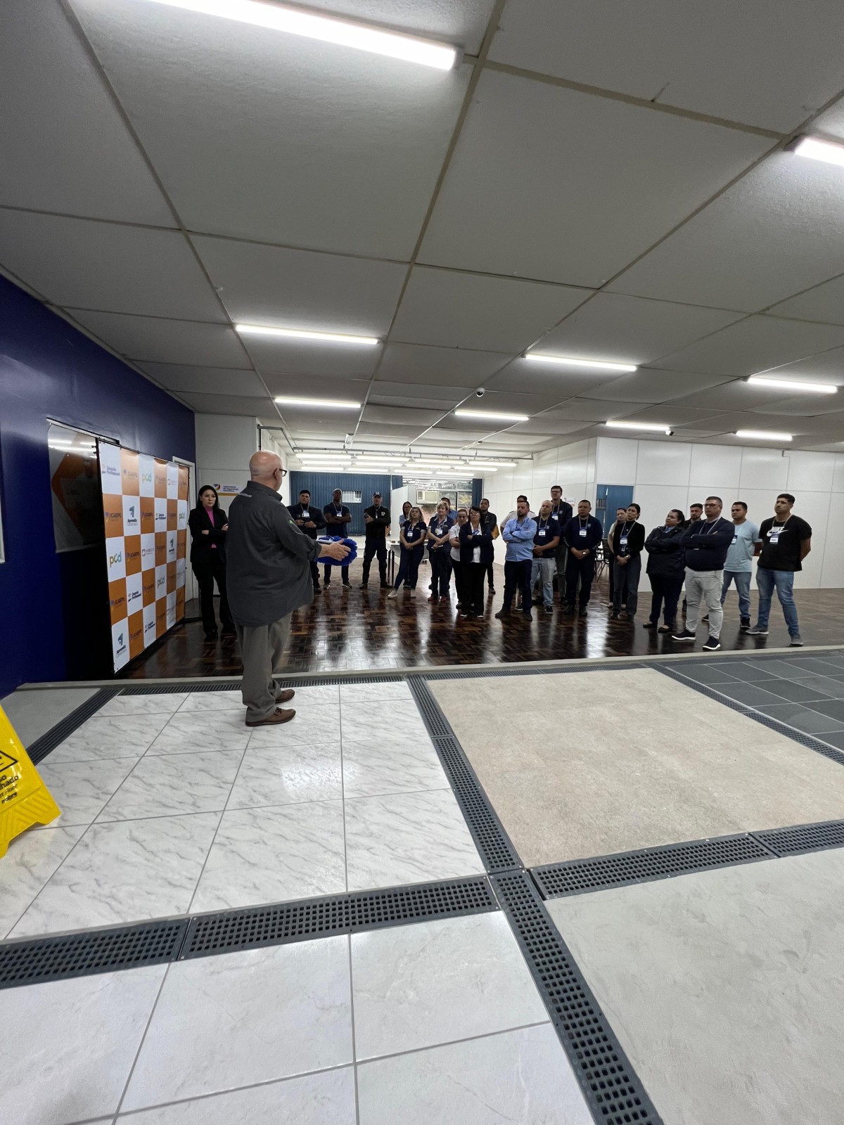 O presidente do ICAEPS, Adm. Evandro Fortunato Linhares, foi o anfitrião do dia e deu boas-vindas aos participantes, "a sede Blumenau é um modelo do Instituto para Santa Catarina e todo país. Hoje iniciamos mais um importante passo dessa trajetória, agora oferecendo cursos de asseio e conservação com aulas práticas".